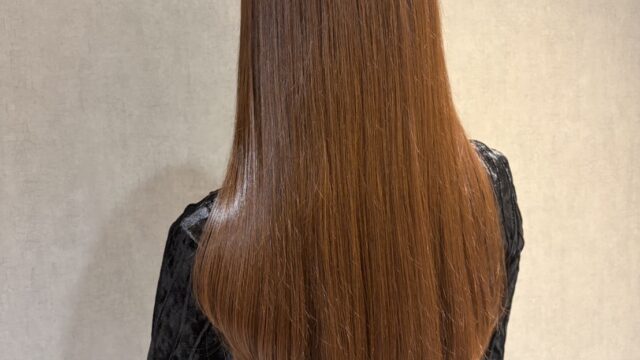 ただ染めるのではなく、髪を丁寧にケアしたことで、絡まりのないツヤツヤの髪になりました。ツヤと潤いが加わって、綺麗な髪になっています。